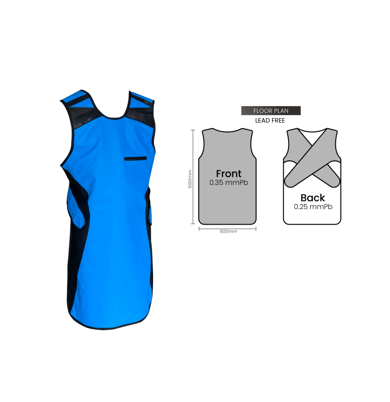 Jual Lead Free Apron Double Tanpa Lengan. Lead Free Apron atau biasa di kenal di indonesia dengan apron pb untuk xray adalah sebuah pakaian yang digunakan agar terhindar dari paparan sinar radiasi. Biasanya digunakan untuk orang – orang yang bekerja di bagian radiologi pada rumah sakit. Karena sinar radiasi memiliki efek samping oleh karena itu alat ini sangat – sangat di perlukan oleh pekerja yang berhubungan dengan sinar radiasi.